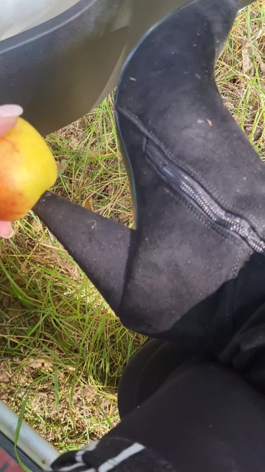 Ich liebe es Dinge zu crushen, zu zertreten, einfach nur platt zu machen. Das können Gegenstände sein, aber auch Lebensmittel wie hier diese beiden Äpfel. Ich stelle mir vor, dass es deine ekelhaften Sklaveneier sind, die ich mit den Absätzen meiner Stiefel aufspieße und sie mit meinen Sohlen anschließend zu Brei mache. Besonders geil ist es, wenn ich dir anschließend befehle, den ganzen Brei vom Boden aufzufressen und mir die Reste von meinen Absätzen und den Sohlen zu lecken. Unterwürfig, demütig bettelnd auf Knien, Loserfotze.